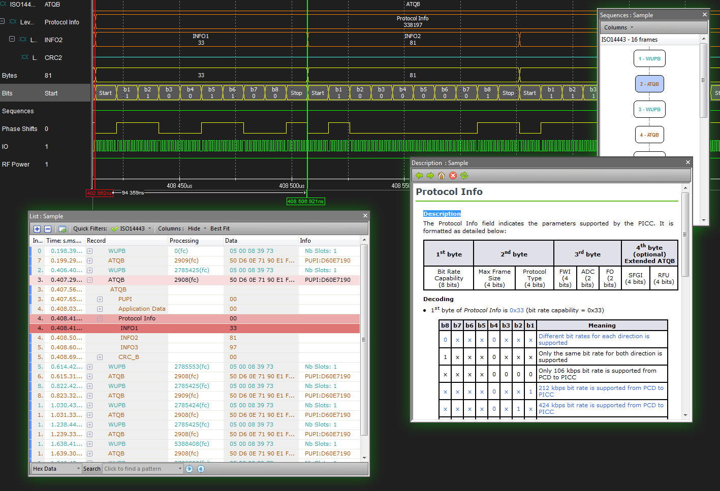 COMPREHENSIVE PROTOCOL ANALYSISInnovative and accurate, ContactLAB provides a detailed analysis of card/reader exchanges. This is combined with single-click access to user-friendly interpretation of ISO 7816 and SWP smart card protocols (including EMV, GSM, HDLC and HCI). A smart card ’s USB interface can also be traced. |